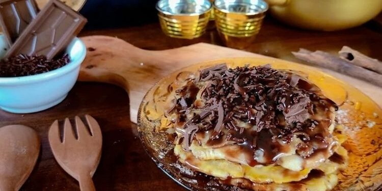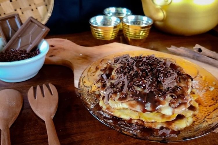 Proses pembuatan di sini sangat khas. Pisang matang dipanggang dengan telaten hingga berwarna kecoklatan dan mengeluarkan aroma manis yang menggoda. Kemudian, pisang tersebut ditekan dengan sempurna hingga menjadi pipih dan renyah di bagian luar namun tetap lembut di dalam. Topping andalannya adalah perpaduan cokelat dan kacang yang melimpah, meleleh lembut di setiap gigitan, menciptakan sensasi manis dan gurih yang begitu kaya.