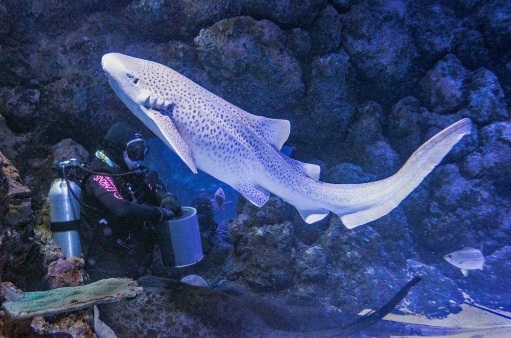 Hiu leopard memiliki motif tutul unik di seluruh tubuhnya, sehingga dinamai seperti leopard. Mereka tinggal di perairan dangkal tempat manusia sering berenang. Namun, meskipun tampak menyeramkan, hiu leopard tidak berbahaya bagi manusia.
