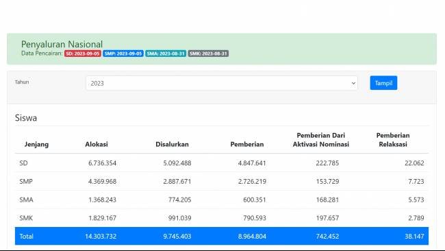 Berdasarkan jenjang pendidikan, besaran dana PIP adalah: