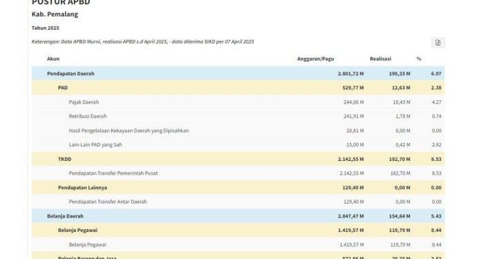 Realisasi Dana Bagi Hasil (DBH) untuk Kabupaten Pemalang, Jawa Tengah, pada tahun 2025 menunjukkan peningkatan yang signifikan dibandingkan tahun sebelumnya. Total DBH yang diterima mencapai Rp 36,09 miliar, naik sekitar Rp 6 miliar dari tahun 2024 yang tercatat sebesar Rp 30,72 miliar. Kenaikan ini mengindikasikan adanya peningkatan transfer fiskal dari pemerintah pusat ke pemerintah daerah.