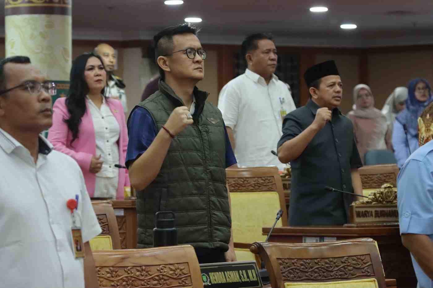 Sebelum rapat dimulai, Sekretaris DPRD Kota Batam Dr. Ridwan Afandi, SSTP, MEng terlebih dahulu menyampaikan daftar kehadiran anggota dewan. Rapat kemudian dilanjutkan dengan menyanyikan lagu kebangsaan Indonesia Raya sebagai pembuka sidang.