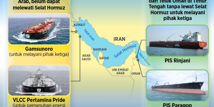 Manajemen Pertamina secara terus-menerus memantau situasi di Selat Hormuz dan Teluk Oman, serta mengambil langkah-langkah mitigasi yang diperlukan untuk memastikan keselamatan kru dan kelancaran operasional kapal.