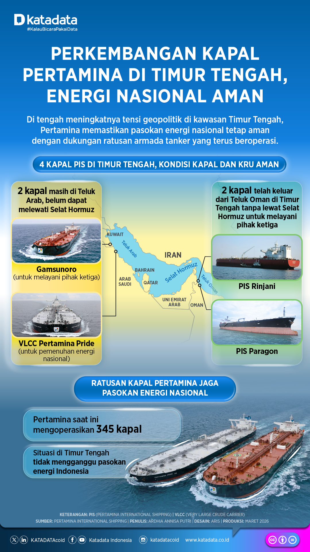 Saat ini, terdapat empat unit kapal yang dioperasikan oleh Pertamina International Shipping (PIS) beroperasi di kawasan Timur Tengah. Seluruh kapal dan kru yang bertugas dilaporkan dalam kondisi aman. Operasional mereka tetap berjalan sesuai dengan standar keselamatan pelayaran internasional yang ketat.