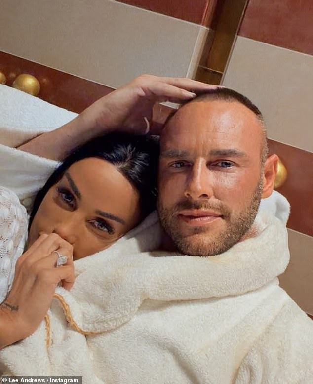 The image was captured during an evening at The Palm Jumeirah in Dubai, where Katie wore a white, fitted vest top paired with light wash denim jeans. Lee wrapped his arms around her, creating a cozy scene that contrasted with the drama unfolding online.