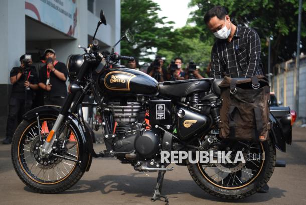 Petugas KPK mengecek motor Royal Enfield sitaan milik mantan Gubernur Jawa Barat Ridwan Kamil di Rumah Penyimpanan Benda Sitaan dan Barang Rampasan (Rupbasan) KPK, Cawang, Jakarta, Jumat (25/4/2025). – (ANTARA FOTO/Indrianto Eko Suwarso)