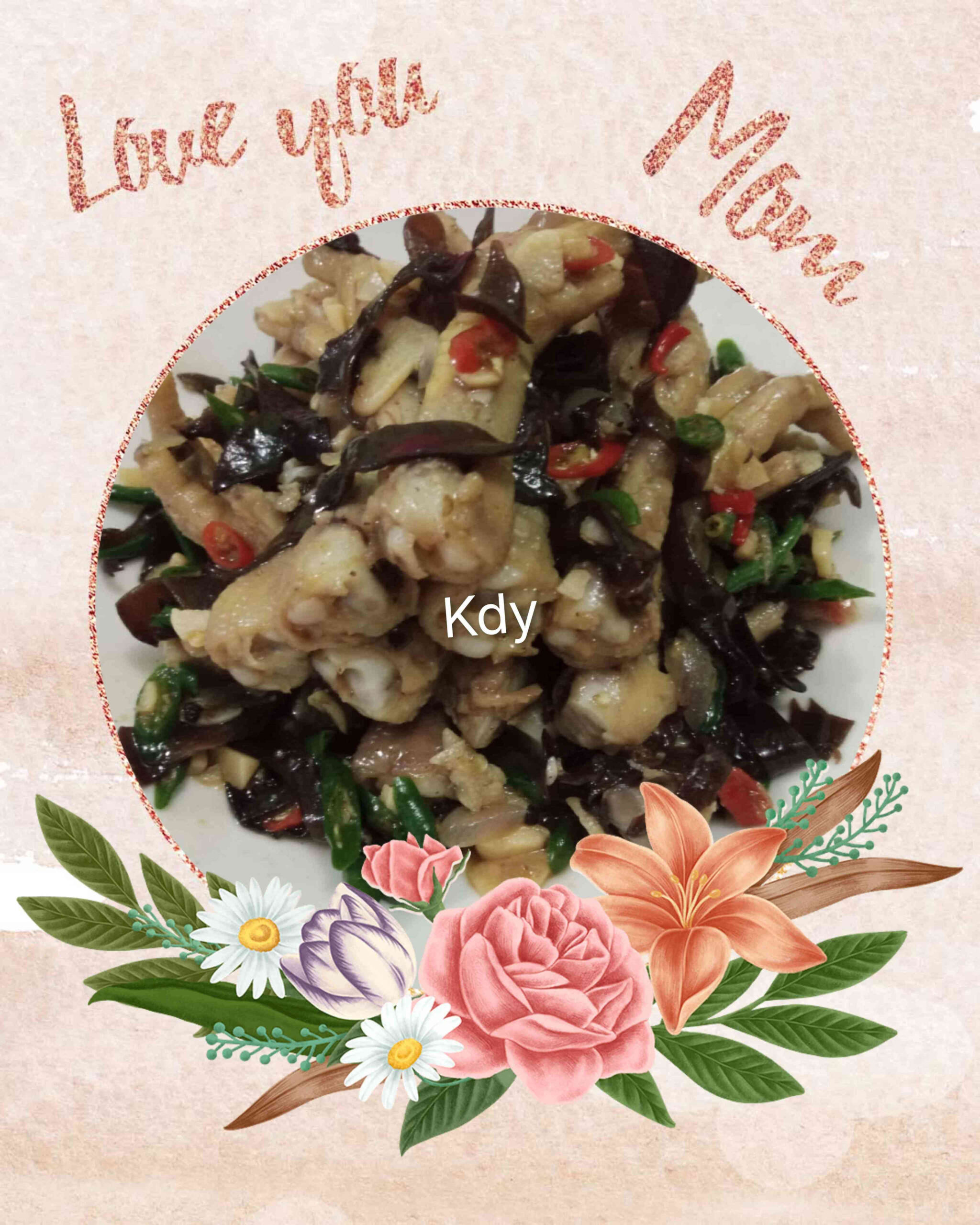 5. Penyatuan Bahan: Masukkan ceker ayam yang sudah direbus dan sedikit air. Aduk sebentar. Selanjutnya, masukkan jamur kuping dan irisan cabai. Aduk-aduk hingga cabai layu dan kuah sedikit menyusut. Cicipi rasanya, jika sudah pas, matikan kompor.