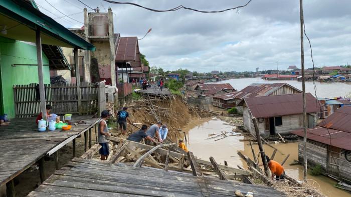 Longsor Parah di Bantaran Sungai Kahayan Putuskan Akses Warga dan Jembatan Kayu