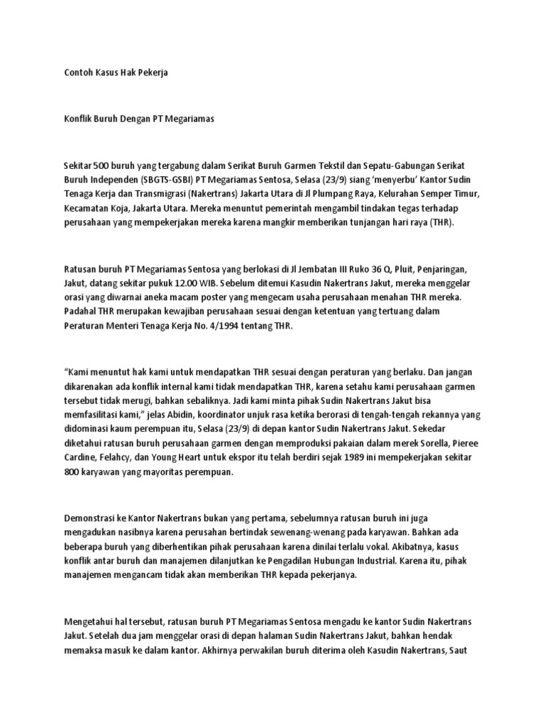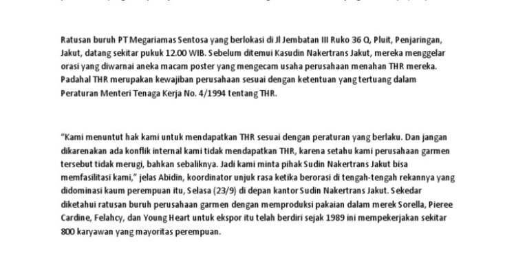 “Ini bukan hanya soal THR dan PHK, tetapi juga menyangkut demokrasi serta penghargaan terhadap persamaan hak di mata hukum yang terjadi di masyarakat kita,” tegasnya.