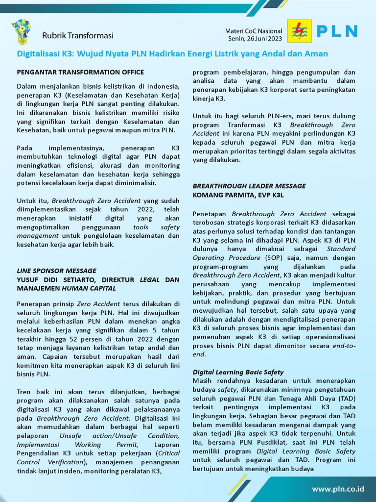 Dengan komitmen tersebut, PLN tidak hanya menghadirkan listrik sebagai sumber energi, tetapi juga memastikan setiap terang yang menyala berasal dari proses kerja yang aman, profesional, dan penuh tanggung jawab demi mendukung keselamatan masyarakat dan kemajuan Indonesia.