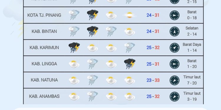 Prakiraian Cuaca untuk Wilayah Kepulauan Riau Hari Ini