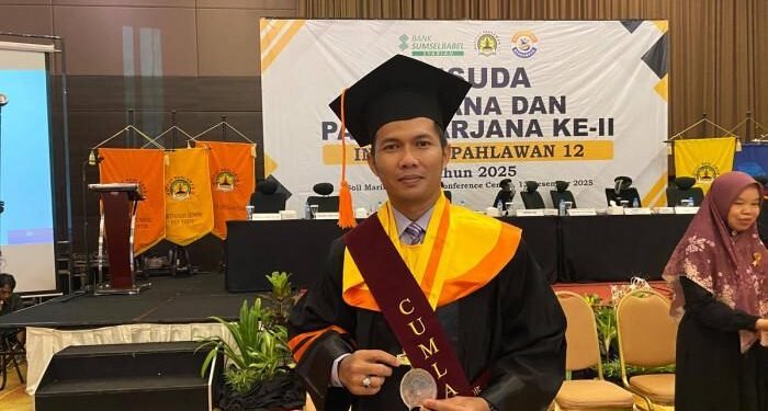 Suasana haru dan kebanggaan memenuhi Ballroom Soll Marina Hotel Bangka pada Sabtu (13/12/2025) saat Institut Pahlawan 12 Bangka menggelar acara Wisuda Sarjana dan Pascasarjana ke-II. Di antara ratusan toga yang berkelebat, satu sosok tak henti menebar senyum hangat: Chari Yulianto, Lurah Matras, Kecamatan Sungailiat, Kabupaten Bangka. Di usianya yang menginjak 44 tahun, Chari berhasil meraih prestasi akademis luar biasa dengan Indeks Prestasi Kumulatif (IPK) sempurna 4,00, menjadikannya lulusan terbaik Program Pascasarjana (S2) Magister Administrasi Publik dengan predikat cumlaude.