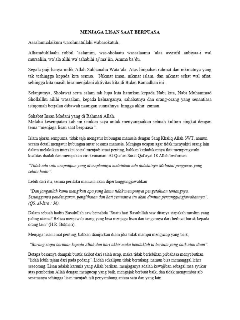 Ramadhan: Latihan Krusial untuk Menjaga Lisan