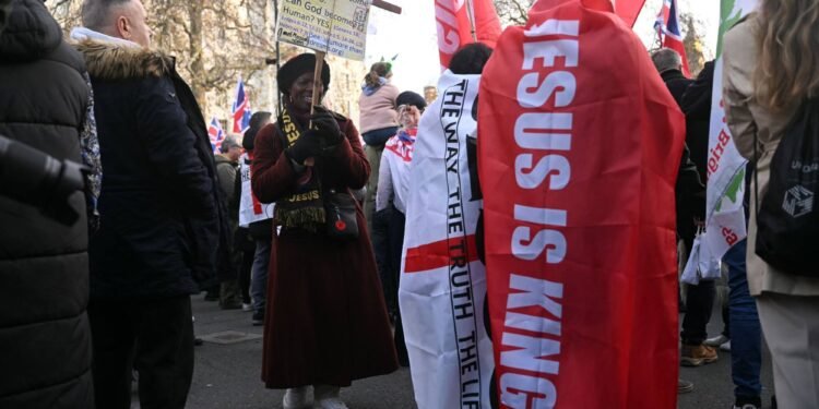 Sekitar 1.000 orang berkumpul di London pada hari Sabtu untuk unjuk rasa “Natal” yang diselenggarakan oleh tokoh sayap kanan Tommy Robinson, sementara para uskup menyatakan keprihatinan mendalam mereka atas penggunaan simbol-simbol Kristen untuk “membenarkan rasisme dan retorika anti-imigran”.