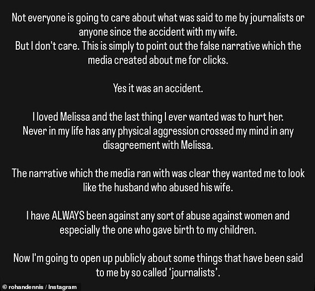Rohan Dennis has shared his personal account of the tragic incident that led to the death of his wife, Melissa Hoskins. In a detailed statement, he confirmed that the event was indeed an accident, emphasizing that it was never his intention to harm her.