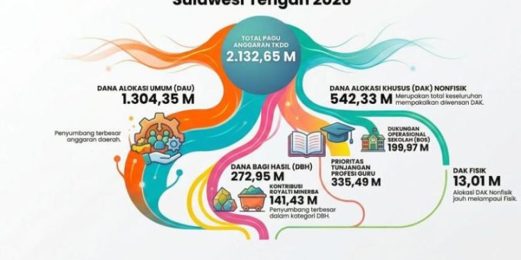 Pemerintah Provinsi Sulawesi Tengah (Pemprov Sulteng) bersiap menyambut alokasi dana Transfer ke Daerah (TKD) yang signifikan pada tahun 2026, dengan total mencapai Rp2,13 triliun. Dana ini merupakan instrumen penting yang akan dialokasikan untuk membiayai berbagai program strategis dan prioritas pembangunan di tingkat provinsi. Rincian alokasi dana ini terungkap melalui data dari Sistem Informasi Transfer Daerah (SIMTRADA) Direktorat Jenderal Perimbangan Keuangan (DJPK) Kementerian Keuangan.