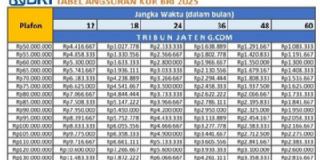 Berikut adalah simulasi angsuran yang disajikan berdasarkan data resmi Bank Mandiri. Tabel ini memberikan gambaran mengenai perkiraan cicilan bulanan Anda untuk berbagai plafon pinjaman dan pilihan tenor. Perlu diingat bahwa untuk pinjaman di atas Rp 100 juta, opsi tenor hingga 60 bulan (5 tahun) tersedia, memberikan fleksibilitas yang lebih besar dalam pengelolaan keuangan usaha Anda.