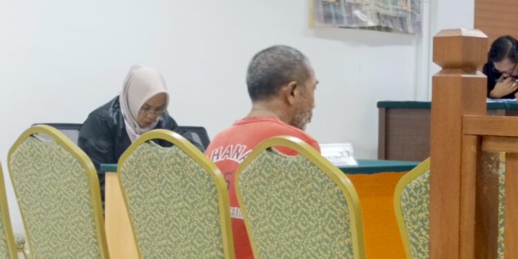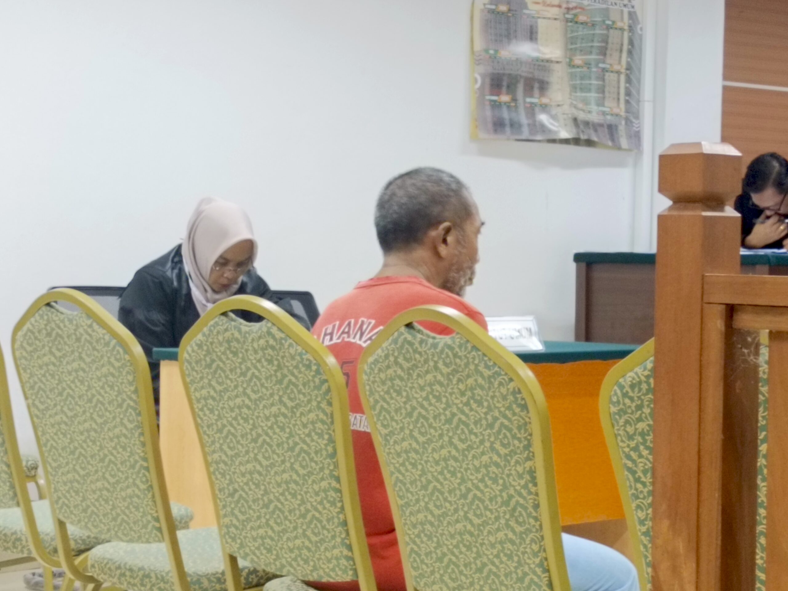 Douglas Napitupulu yang terlihat serius membacakan surat putusan terhadap terdakwa Rahman Padak harus terganggu dengan suara ponsel milik Zulna Yosepha.