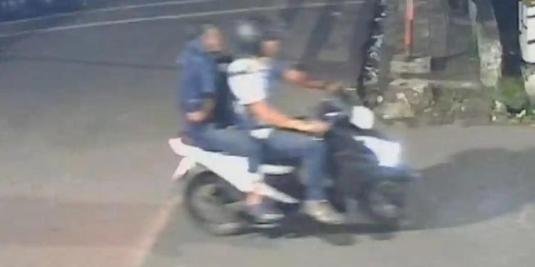 Dua orang pelaku yang mengendarai sepeda motor, diduga jenis Honda Beat tahun produksi 2016 hingga 2021, mendekati korban dari arah berlawanan. Deskripsi pelaku yang diperoleh menyebutkan bahwa pengendara mengenakan kaus kombinasi putih dan biru, celana gelap yang diduga berbahan jeans, serta helm hitam. Sementara itu, pelaku yang duduk di belakang menggunakan penutup wajah atau masker berwarna hitam menyerupai buff, kaus biru tua, dan celana panjang biru yang digulung.
