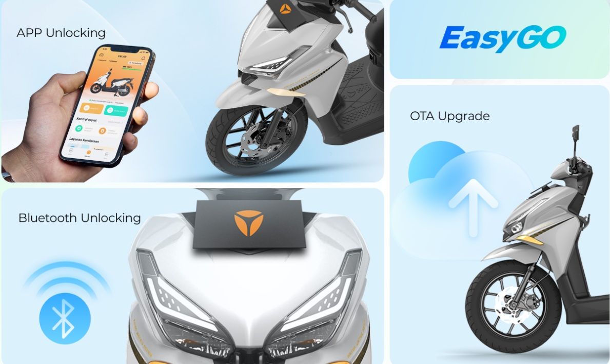 Konektivitas aplikasi yang memungkinkan pengguna mengakses fitur GPS, find my motorcycle, dan unlock motor secara digital.